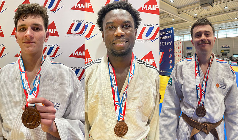 Mais l'Association sportive de l'UPVD (AS UPVD) n'est pas rentrée bredouille ! En championnat de France Kyus (ceintures de couleurs), nos combattants se sont illustrés : Pacôme Dumont (IUT), Louis Faucomprez (IAE) et Mathieu Tarange (DSE) reviennent tous les trois parés de bronze.