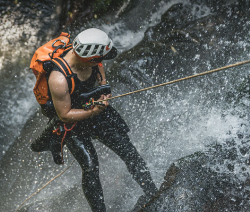 Matériel fourni : combinaison Néoprène, chaussettes Néoprène, chaussures de canyoning, casque, baudrier, matériel collectif